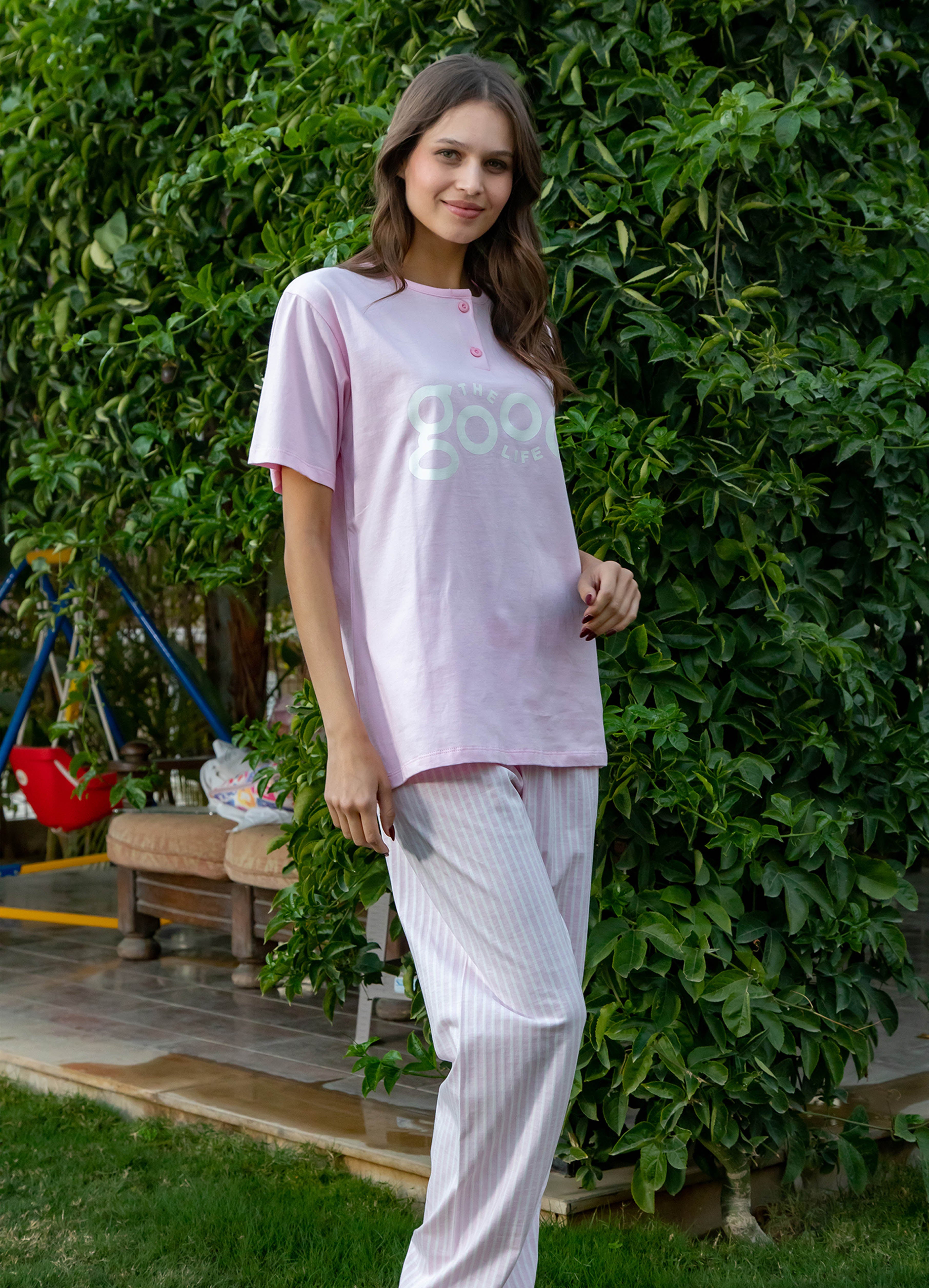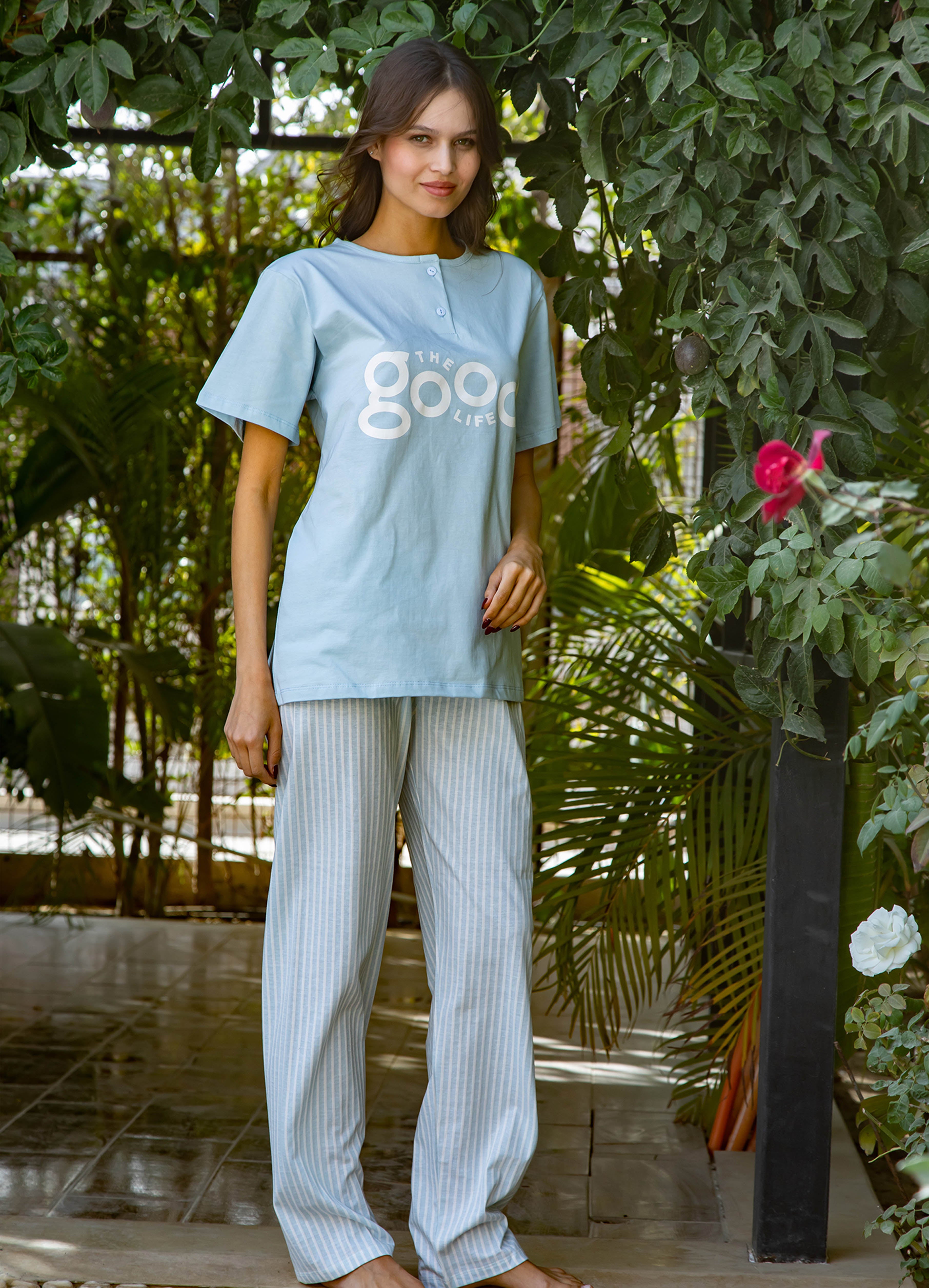 Half Sleeve & Pants Cotton Pyjama Set