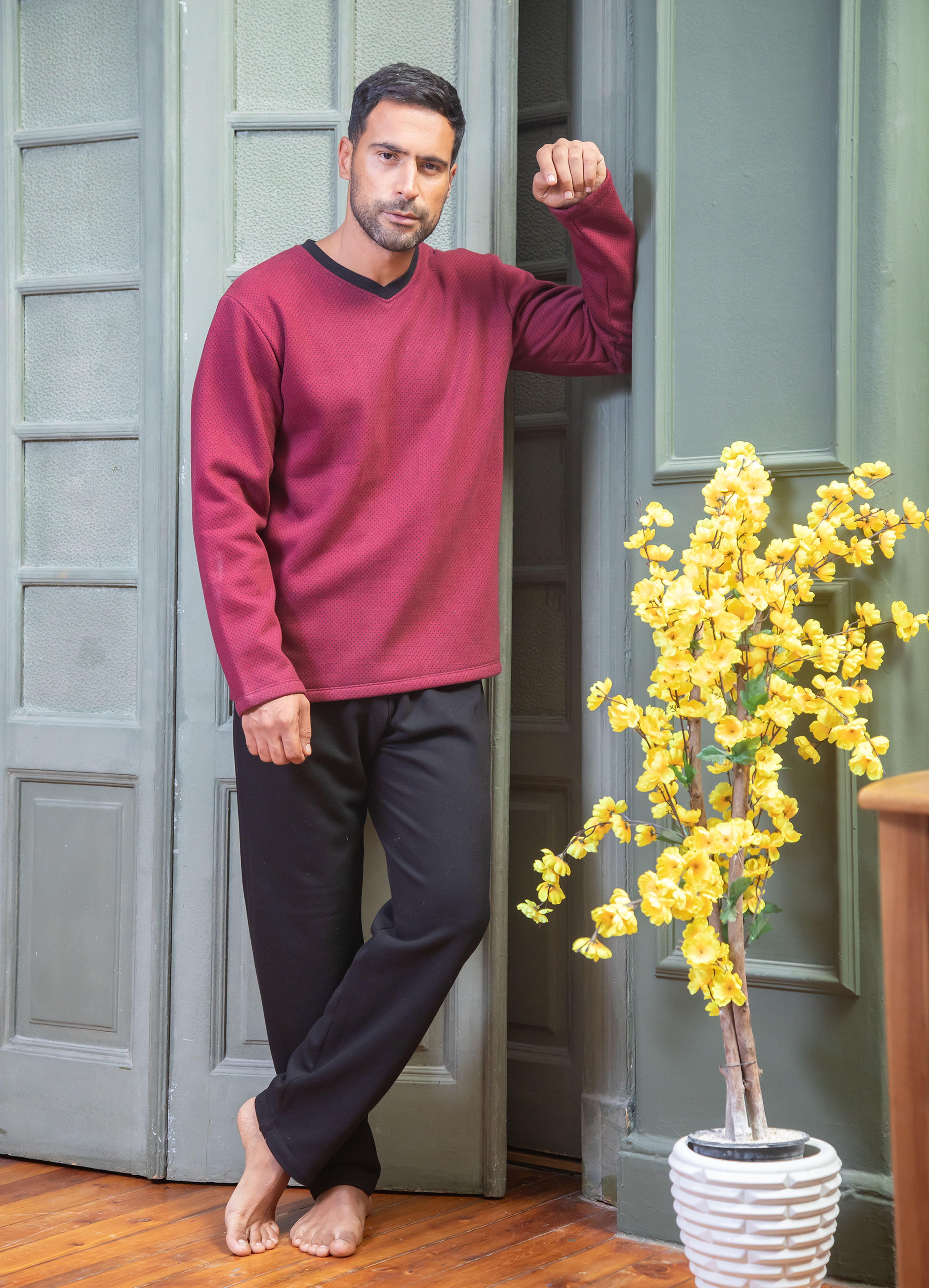 Textured Pants With Lining Set